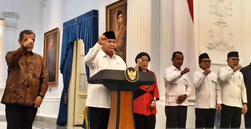 Dalam pernyataan resminya, Kepala Negara didampingi Presiden RI ke-5 Megawati Soekarnoputri, Ketua MPR Ahmad Muzani, Ketua DPR RI Puan Maharani, Ketua DPD RI Sultan Najamudin, sejumlah pimpinan partai politik, antara lain Wakil Ketua Umum Demokrat Edhie Baskoro Yudhoyono (Ibas), Sekjen PKS Muhammad Khalid, Ketua Umum Partai Golkar Bahlil Lahadalia, Ketua Umum PKB Muhaimin Iskandar, Ketua Umum PAN Zulkifli Hasan, dan Ketua Umum Partai NasDem Surya Paloh.