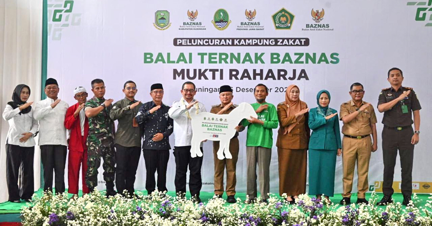Kuningan, MI.com — Badan Amil Zakat Nasional (BAZNAS) RI melakukan penguatan zakat produktif berbasis pemberdayaan ekonomi masyarakat di sektor peternakan di Kabupaten Kuningan. Upaya itu dilakukan dengan peresmian Kampung Zakat dan Balai Ternak Zakat Mukti Raharja di Desa Sayana, Kecamatan Jalaksana, Selasa (16/12/2025).