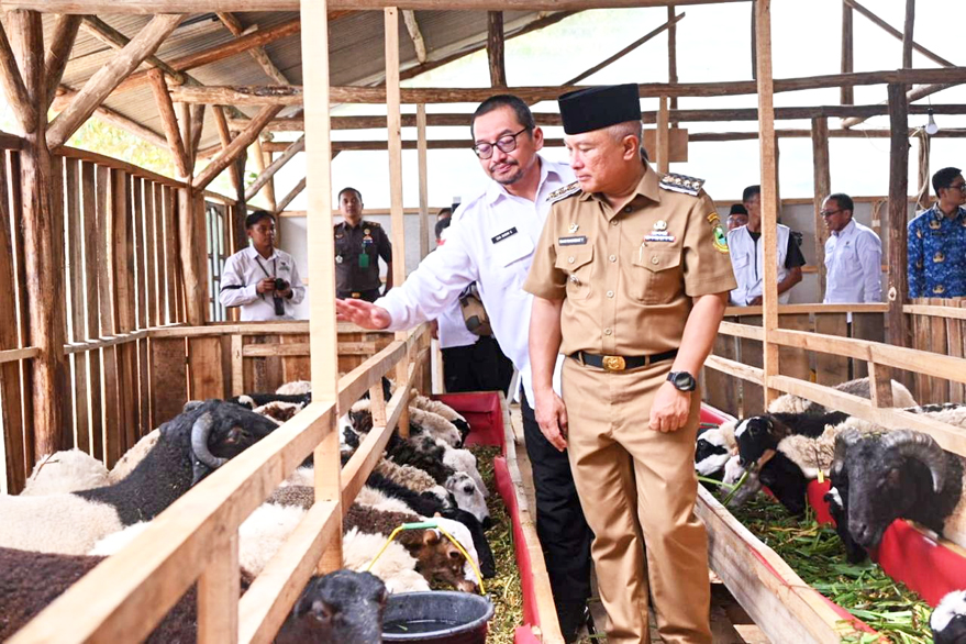 Direktur Pendayagunaan, Penyaluran UPZ dan CSR BAZNAS RI Eka Budhi Sulistyo dan Bupati Kuningan Dian R Yanuar di Balai Ternak Zakat Mukti di Desa Sayana, Kecamatan Jalaksana, Selasa (16/12/2025)