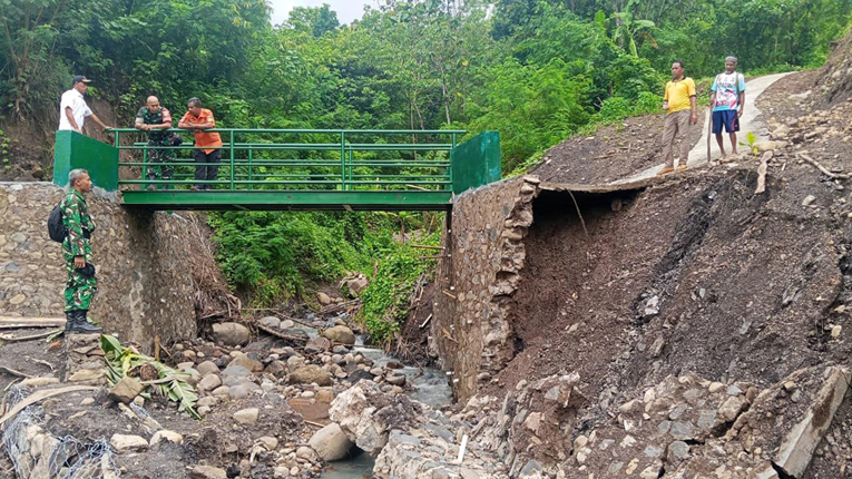 “Aparat desa dibantu masyarakat memasang rambu-rambu dari bambu untuk sementara menutup jembatan,” tuturnya.