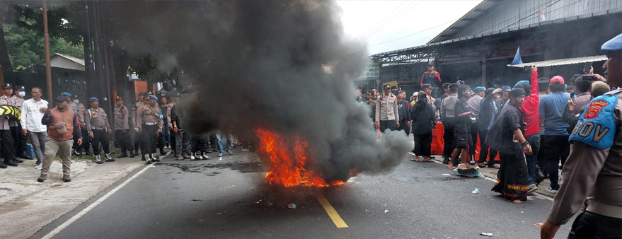 Aksi unjukrasa diawali atraksi debus, lalu mereka membakar ban bekas di tengah jalan depan BTNGC. Kobaran api sebagai simbol protes panas berasap pekat. Sementara arus lalu lintaspun praktis terganggu dan Polantas-pun sibuk mengurai arus kendaraan dari arah Kuningan ke Cirebon dan sebaliknya.