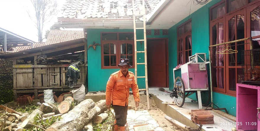 Keterangan Kepala Pelaksana BPBD Kabupaten Kuningan, Indra Bayu Permana, upaya yang dilakukan, petugas BPBD Kuningan bersama masyarakat, melakukan pembersihan, pemangkasan dan pemohotongan pohon tumbang yang menimpa rumah dan bangunan madrasah, selesai Sabtu (24/1) pukul 15.10 WIB.