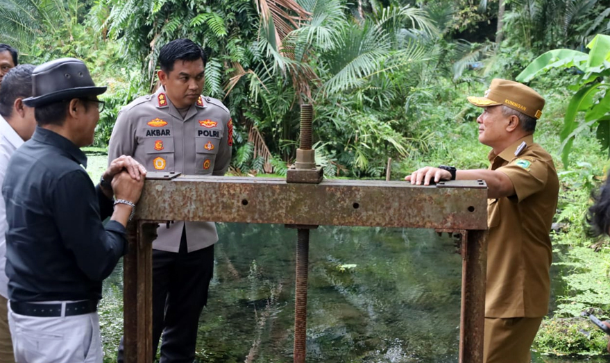 Peninjauan dilakukan bersama Kapolres Kuningan, AKBP Muhammad Ali Akbar, S.IK, M.Si, Sekda Kuningan, Uu Kusmana, S.Sos, M.Si, dan Direktur PAM Tirta Kamuning, Dr. Ukas Suharfaputra, MP.