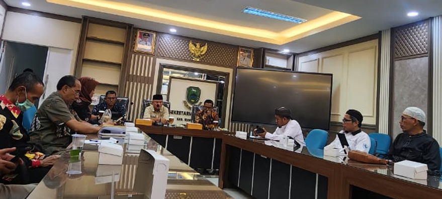 Para aktivis Forum Masyarakat Peduli Kuningan (FMPK) audensi dengan Bupati Kuningan, Dian Rachmat Yanua terkait membiarkan kegiatan Jalsah Salanah Jemaat Ahmadiyah Indonesia (JAI) di Kuningan, Kamis (11/12/2025)