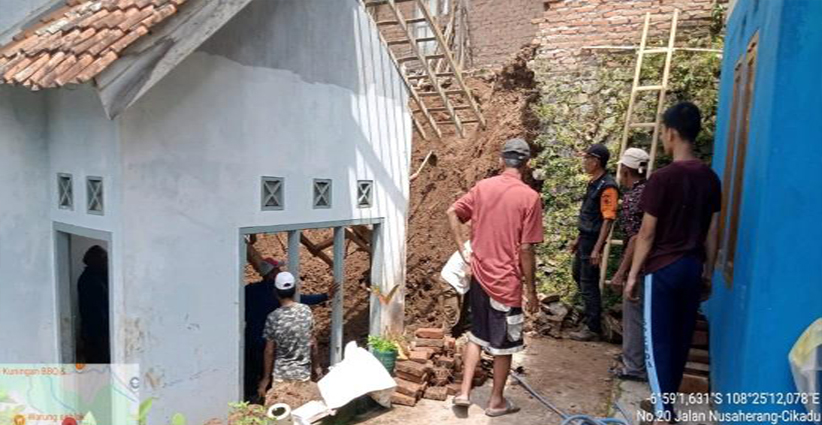 TPT (tembok penahan tebing) rumah sepanjang 20 meter dengan tinggi 5 meter, longsor dan menyeret rumah Nandang (45) hingga ambruk pada beberapa bagian. Diantaranya bagian dapur dan kamar mandi milik Nandang (45) panjang 5 meter x 3,5 meter atau seluas 16,5 M², ruang tamu dan kamar (7 x 3 meter) atau seluas 21 M², dari luas rumah 45 M².