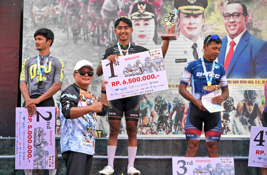 Persaingan ketat pada kategori Men Elite, pembalap Muhammad Farrel Alfaridzi dari klub Nusantara BYC berhasil finis pertama dengan catatan waktu 2 jam 24 menit 40,333 detik. Ia ditempel ketat oleh Jamal Hibatullah dari DrJ Cycling Team serta Woro Fitriyanto dari BRCC Banyuwangi, yang sama-sama mencatat waktu identik.