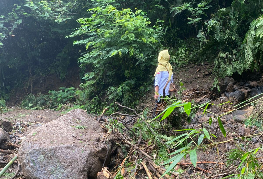 Saat ini telah dilakukan penanganan darurat, dengan memotong pohon di area longsor. Dan besoknya dilakukan perbaikan dengan kerja bakti.” Imbuh kuwu Nanti.