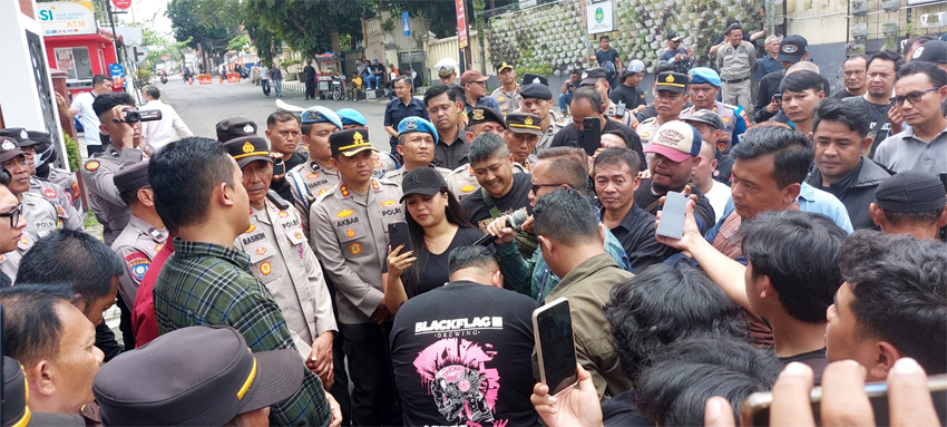 Pintu gerbang kantor Kejari dijaga ketat puluhan anggota polisi termasuk Polwan dipimpin langsung oleh Kapolres AKBP Muhammad Ali Akbar.
