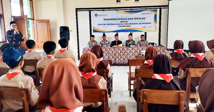 Kuningan, MI.com — MTs Negeri 7 Kuningan, Jawa Barat mendapat kunjungan dari Kantor Urusan Agama (KUA) Kecamatan Jalaksana yang memberikan materi pembinaan remaja usia sekolah kepada 50 siswa terpilih. Kegiatan ini berlangsung di ruang kelas dengan penuh antusiasme para peserta Kamis (28/08/2025).