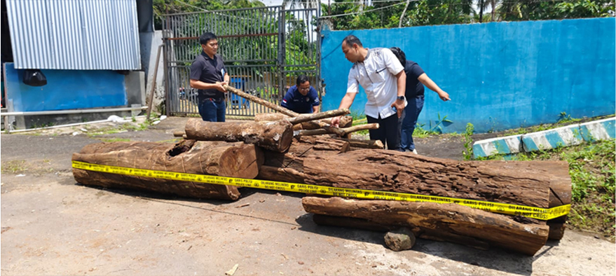 Barang bukti yang berhasil diamankan berupa 9 batang kayu sonokeling berbentuk log, dua batang kayu yang digunakan sebagai alat angkut, serta satu dus mesin gergaji. Sementara itu, mesin gergaji yang digunakan untuk penebangan masih dalam pencarian karena diduga hilang saat ditinggalkan di lokasi kejadian.
