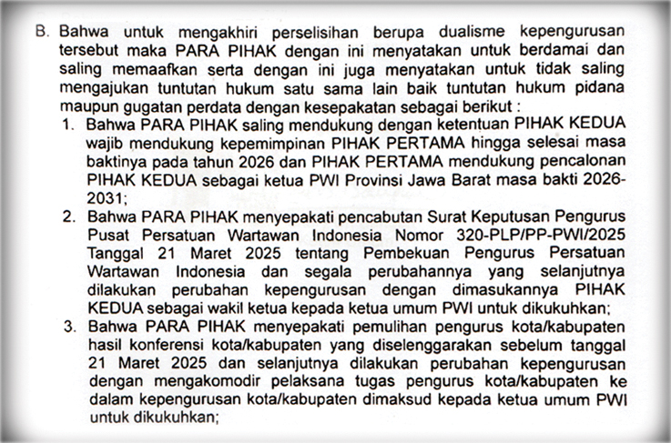 Ini kutipan kesepakatan antara PWI Jawa Barat dengan Plt PWI Jabar