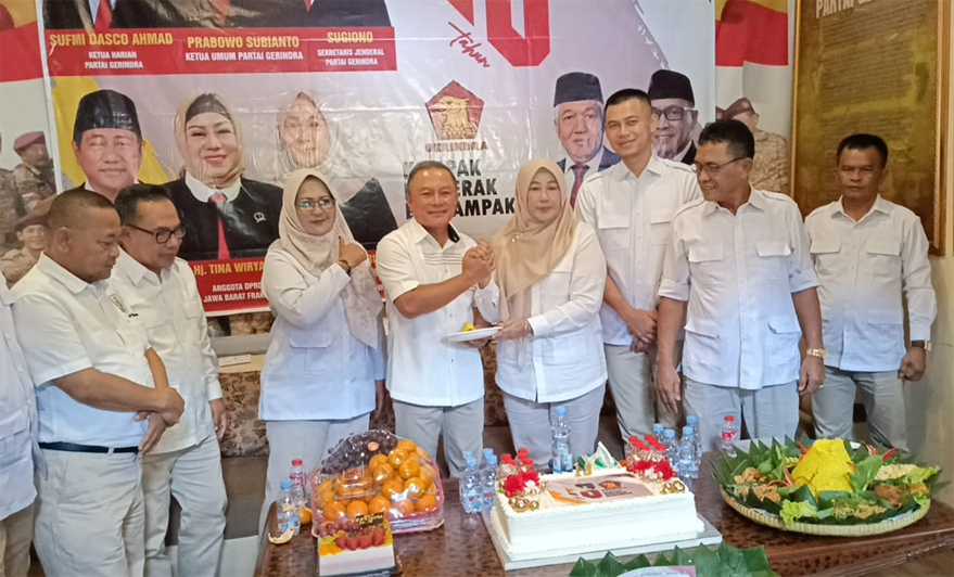 Dalam perayaan HUT Gerindra hari ini tidak hanya partai yang hadir semata tetapi membawa perubahan di usia 18 tahun Partai Gerindra jatuh bangun berjuang menghadapi badai-badai tanpa lelah kompak bergerak berdampak membuat perubahan untuk bangsa dan negara yang sudah dibuktikan oleh DPC Gerindra Kabupaten Kuningan.