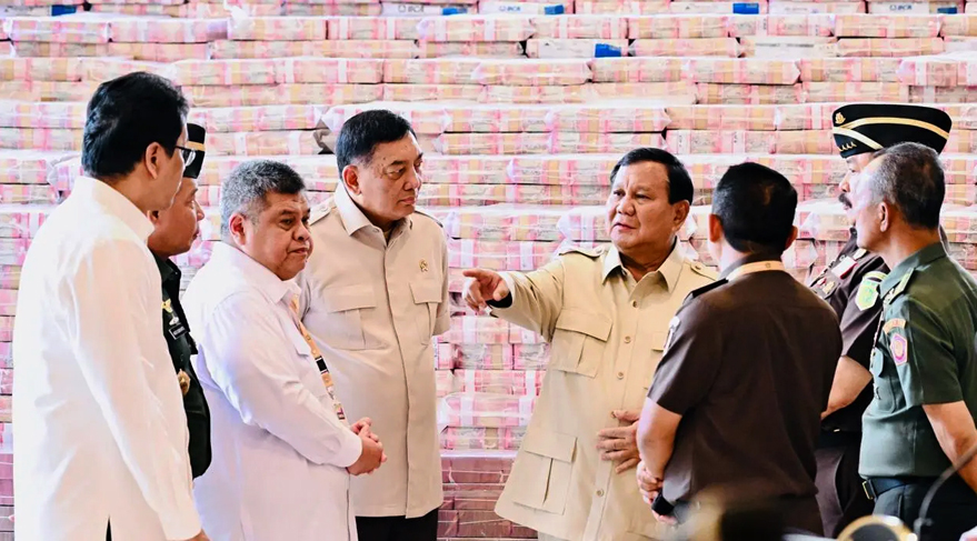 Presiden Prabowo Subianto hadiri penyerahanan duit hasil korupsi CPO (Liputan6.com/biro pers istana)