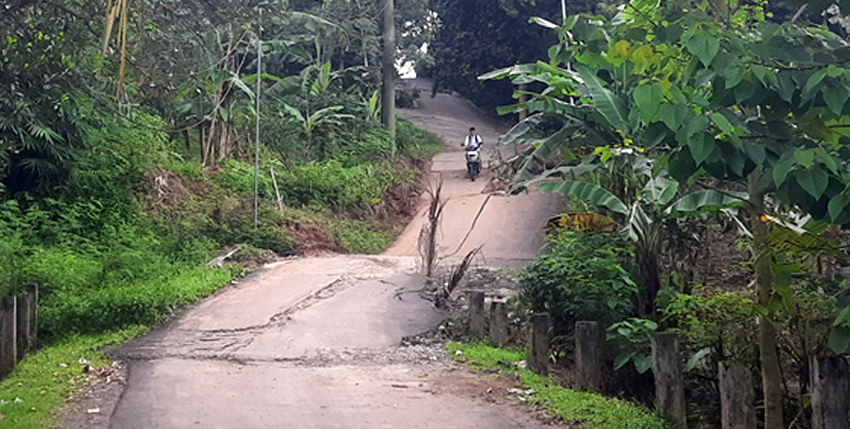 Jembatab Ciriung, di perbatasan Desa Cidahu dan Desa Ciwiru, amblas dan sudah lama tidak pernah diperbaiki