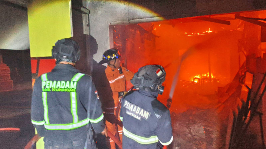 Kuningan, MI.com  — Insiden kebakaran melanda sebuah toko bangunan Sri Mekarsari milik Sarju (70) di Dusun Pahing RT 08 RW 03 Desa Mekarwangi, Kecamatan Lebakwangi, Kabupaten Kuningan, Senin (1/12/2025) pukul 02.00 WIB.